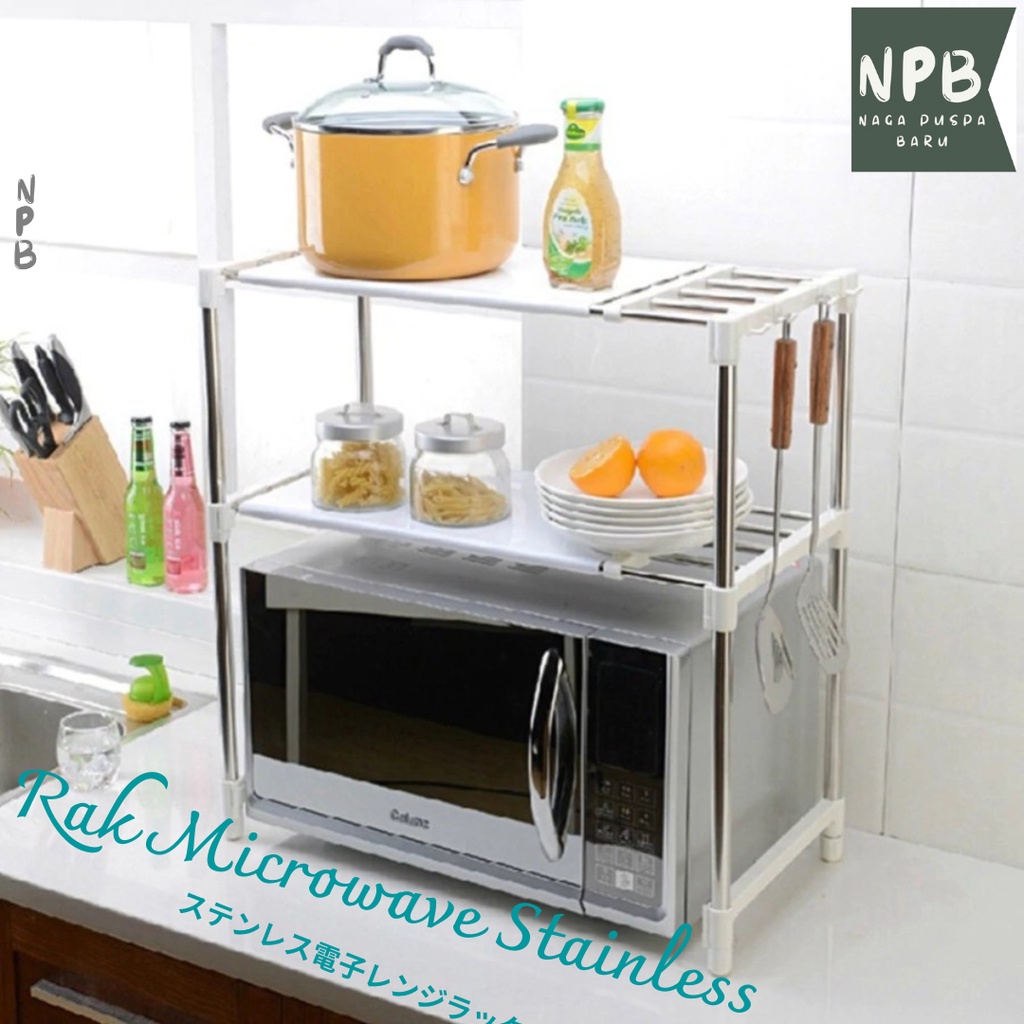 Microwave Storage Rack merupakan rak penyimpanan untuk dapur yang dapat diletakan diatas microwave atau oven anda sehingga tidak ada lagi microwave/oven yang memakan tempat di dapur anda.