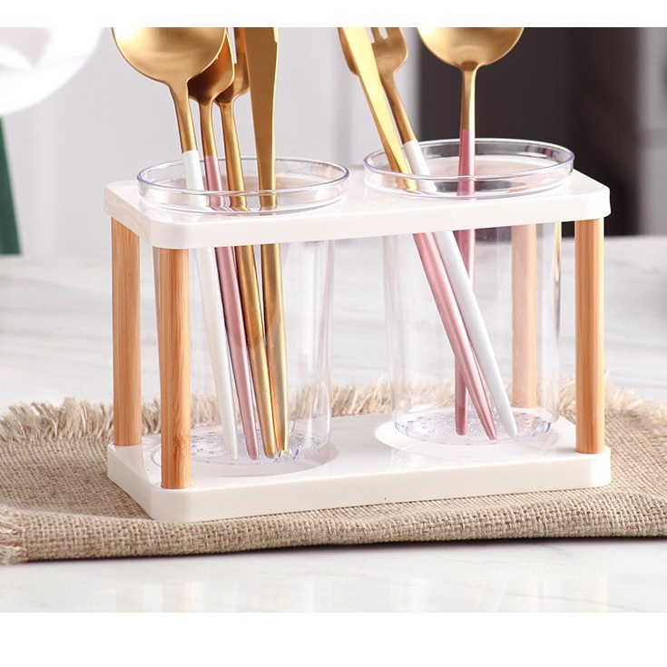 Fitur Desain Unik Tempat penyimpanan sendok dan garpu ini terdiri dari dua buah penyimpanan berbentuk tabung transparan yang telah dilengkapi dengan penopang tiang berbahan bambu sehingga tampilannya sangat artistik dan menarik. Sangat cocok digunakan untuk merapihkan peralatan makanan Anda seperti sendok, garpu, sumpit dan lainnya.