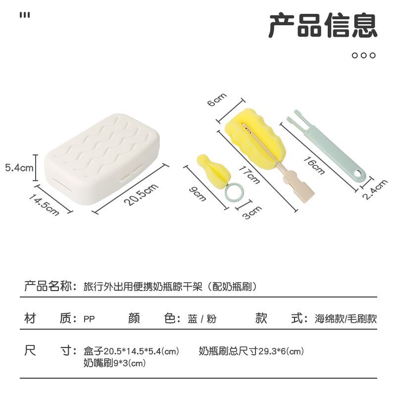 Fitur dan deskripsi = WARNA : RANDOM TIDAK DAPAT PILIH 1. Size : Ukuran rak adalah 20.5*14.5*5.4cm ukuran keseluruhan sikat botol adalah 29.3*6cm ukuran sikat puting adalah 9*3cm 2. Terbuat dari bahan PP berkualitas tinggi, tidak ada BPA 3. Nyaman digunakan, tidak terbatas pada penggunaan di rumah ataupun di luar rumah, ukuran kecil, dapat dimasukkan ke dalam tas, bepergian dengan bayi jadi terasa tenang dan nyaman. 4. Pengeringan cepat, bagian bawah dirancang dengan alur drainase bergelombang yang ditinggikan, yang secara efektif dapat mengisolasi kelembaban dan mengering dengan cepat dan alami 5. Angkat braket, botol susu, dot, dan teether semuanya bisa dijemur 6. Sikat botol yang dapat dilepas, pegangan yang diperpanjang dapat menyuci botol bagian terdalam, dapat dilepas untuk penyimpanan yang mudah dan ringkas.