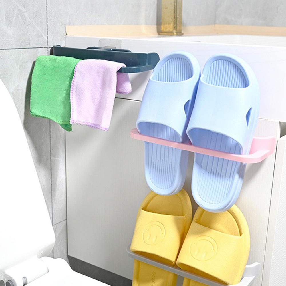 Perlengkapan Rumah > Organizer Rumah > Organizer Rumah Lainnya > ღ Rak Penyimpanan Sepatu Lapisan Ganda yang Dipasang di Dinding Pemegang Sandal Kamar Mandi Bebas Pukulan Rak Gantungan Kamar Mandi Kamar Mandi Organizer