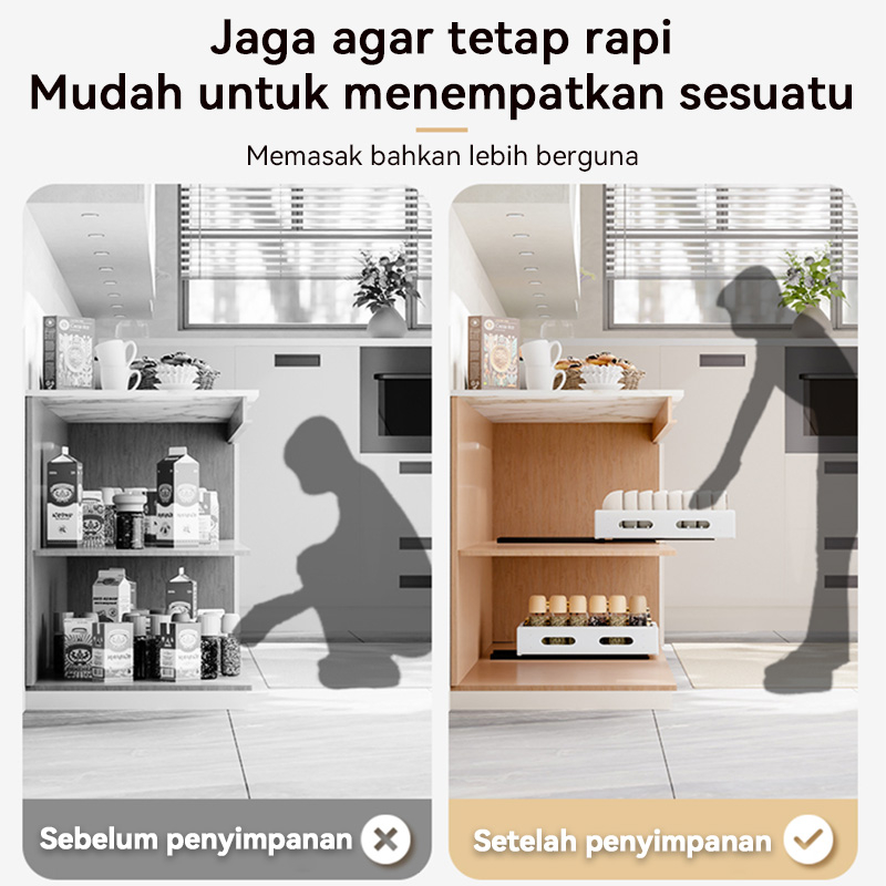 - Hemat ruang: Menghemat banyak ruang dan waktu dengan mempermudah akses ke peralatan dan persediaan, membuat dapur Anda lebih bersih dan rapi.