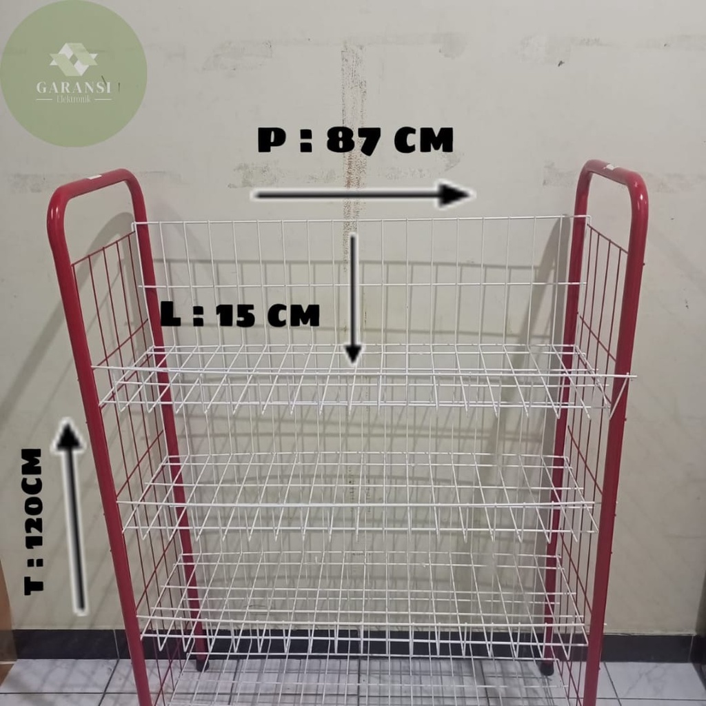 Bahan : Besi dilapisi plastik Kuat, Ringan dan anti karat serta bisa dicuci Bisa dipakai untuk Rak Pajangan dagangan ataupun sebagai rak serbaguna di rumah anda.