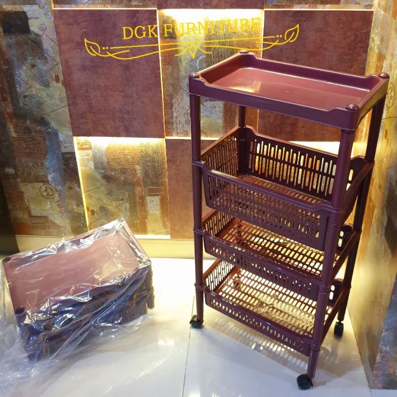 Perlengkapan Rumah > Furniture > Rak & Rak Gantung > Rak Salon Segi 4 Susun serbaguna serba guna nampan 4 tingkat empat tingkat Maron Roda Beroda Plastik