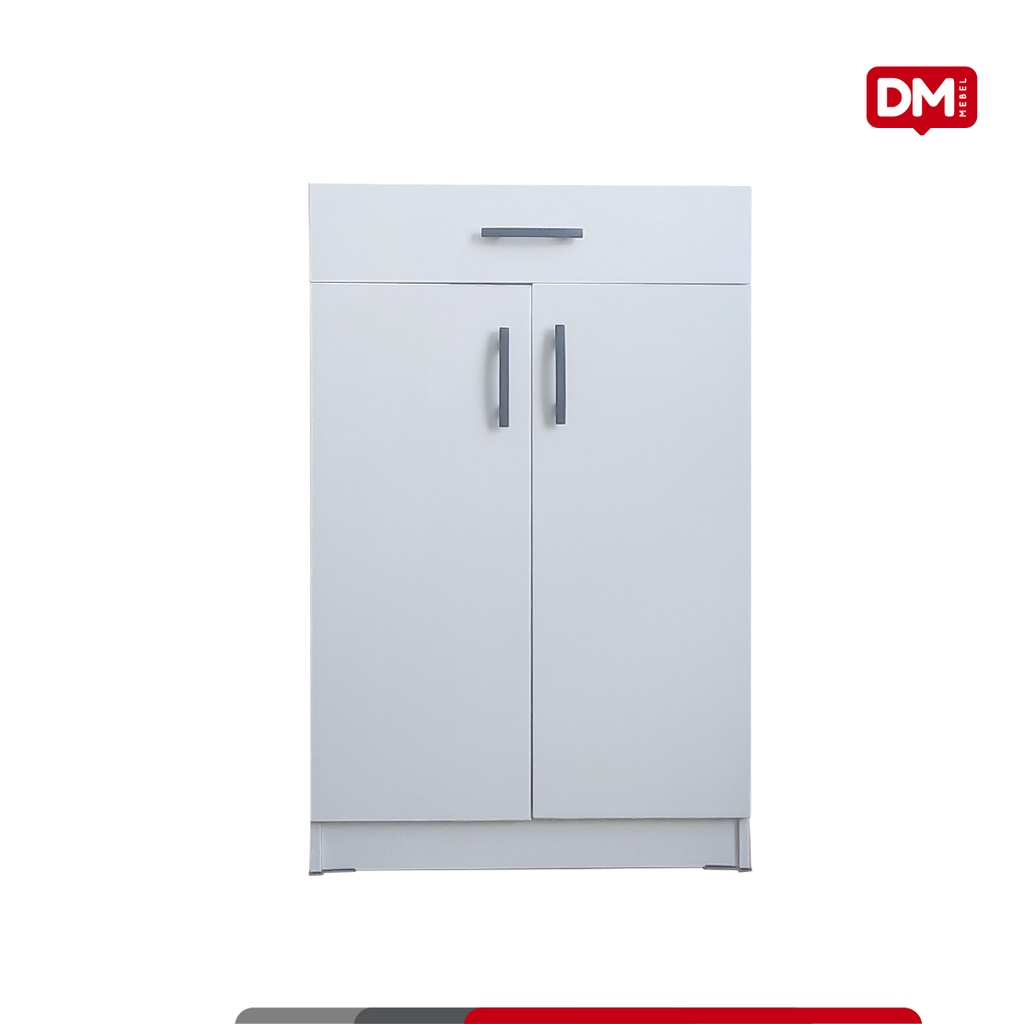 Detail Produk & Spesifikasi : - Ukuran : 63 cm x 33 cm x 100 cm - Warna : white | brown - Bahan : Parikel Board - Berat : 13 kg