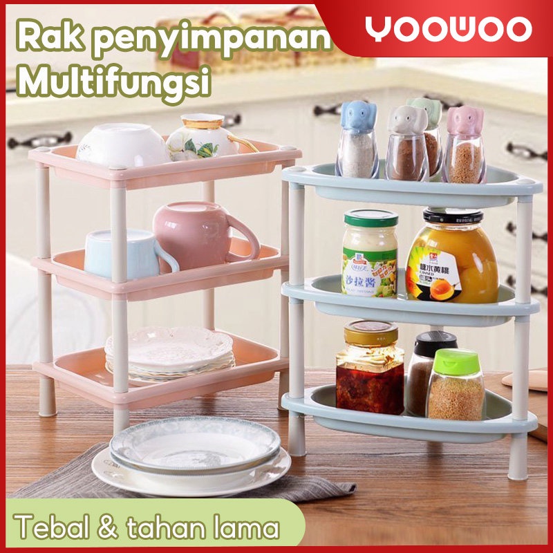 Fungsi Produk : Rak bumbu dapur / Rak serbaguna Bahan : Plastik PP Deskripsi Produk : 1. Rak serbaguna yang dapat digunakan untuk rak bumbu dapur atau rak kamar mandi. 2. Desain 3 lapisan dapat menyimpan apa saja, rapi dan praktis. 3. Semua barang dapat tertata rapi, meja tidak berantakan. 4. Model segitiga sehingga lebih mudah untuk meletakan rak pada sudut rumah. 5. Dapat di bongkar pasang dan terbuat dari bahan yang kokoh.