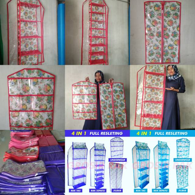 Sudah termasuk 4 macam barang ( RAK TAS + RAK SEPATU + RAK JILBAB + RAK UNDERWEAR( WARNA dan MOTIF serasi )