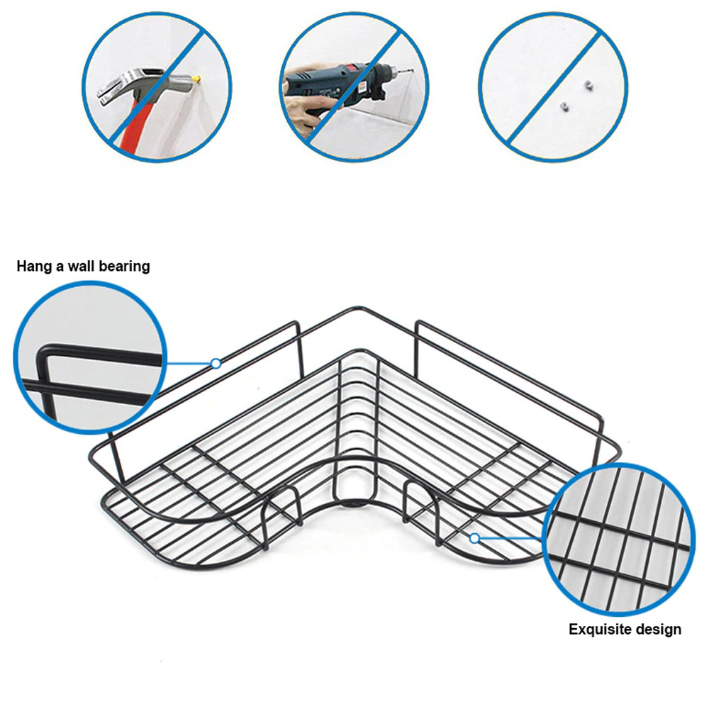 Detail Rak Sudut Siku Tempel Dinding Kamar Mandi Tempat Penyimpanan Peralatan Mandi Serbaguna