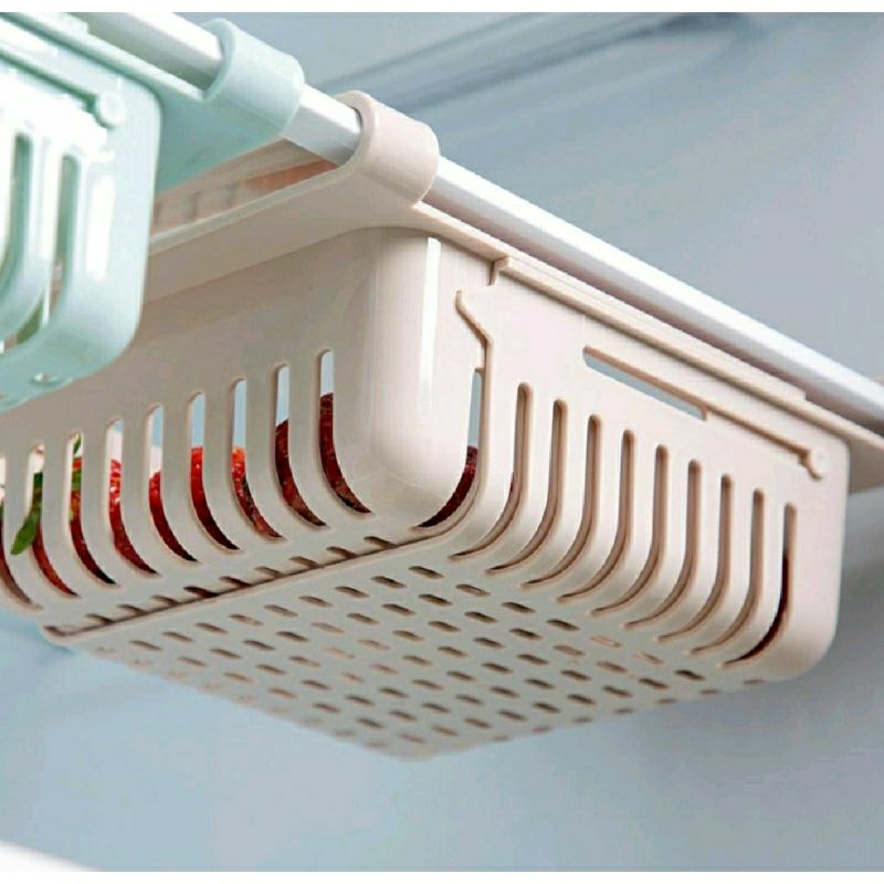 Rak Tambahan Kulkas Serbaguna Sliding Rack Multifungsi Organizer Kulkas Laci Keranjang Sliding Penyimpanan Kulkas