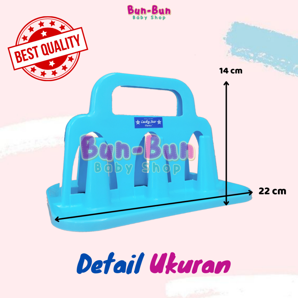Tempat Pengering Botol Susu Bayi Berfungsi sebagai tempat/rak untuk mengeringkan botol susu bayi setelah dicuci sehingga benar-benar kering.