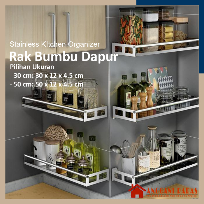 Perlengkapan Rumah > Furniture > Rak & Rak Gantung > Rak Tempel Dapur Rak Bumbu Tempel Dinding Rak Gantung Dapur Serbaguna Tempel Dinding Rak Stainless Dapur Rak Tempel Stainless
