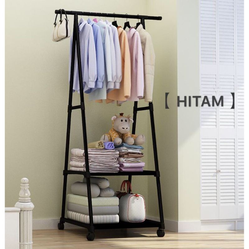 Rak triangle adalah rak multifungsi bisa untuk rak baju rak jilbab,sajadah yang bawah bisa untuk menaruh sepatu sandal maupun barang lainnya