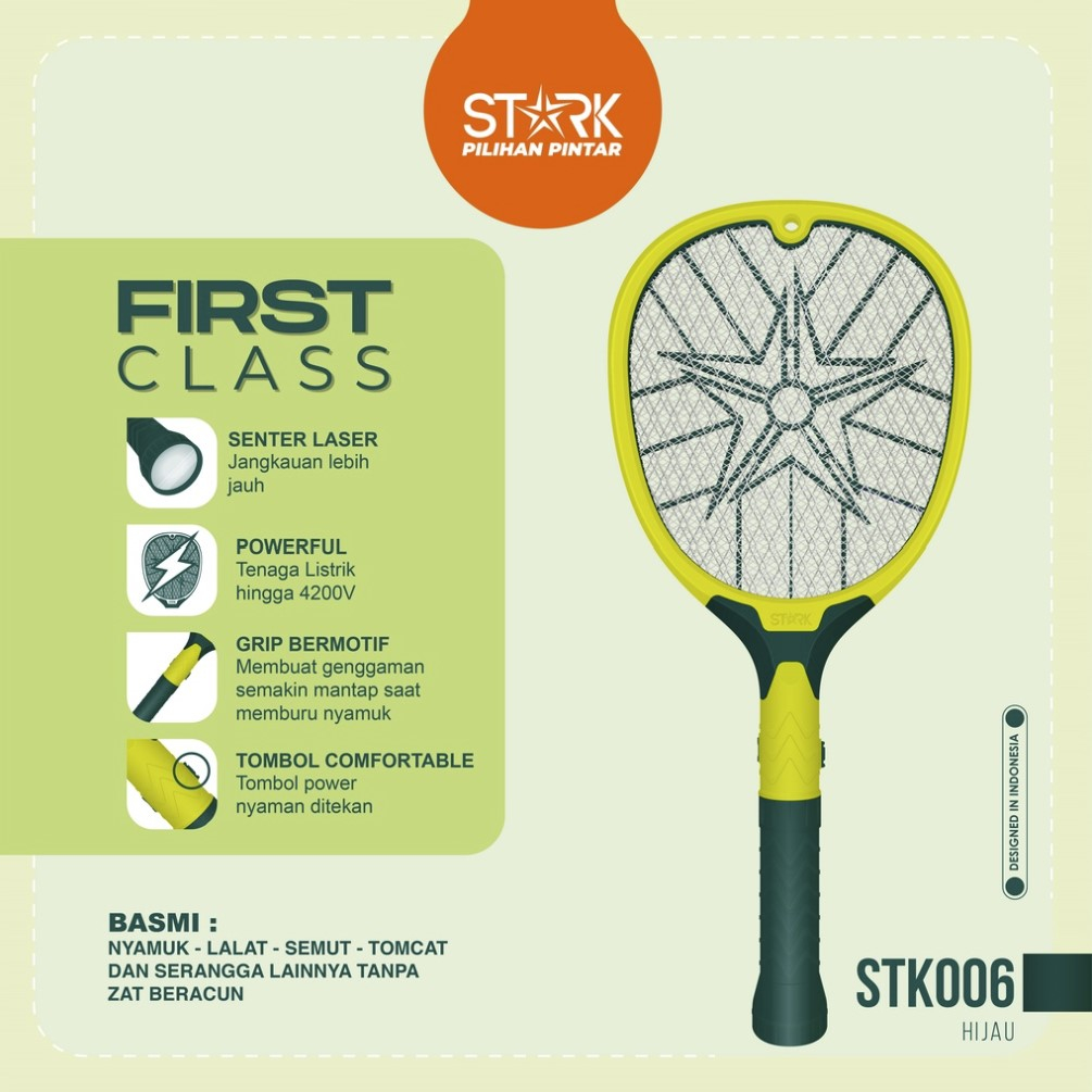 Stark Tipe : STK-006 Raket Nyamuk Senter Lepas Raket Nyamuk Yang Memiliki Kelebihan Senter Dapat Dilepas Sehingga Multi Fungsi Tegangan 170-240 Frekuensi 50-60Hz Baterei 400mAH Electricity 1w Rechargeable Battery