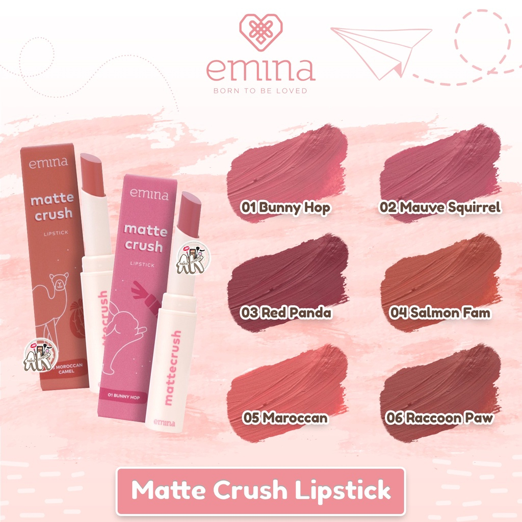 ❤ Emina Mattecrush is a limited-edition lipstick that I have crush on! Dengan blurring-power, Emina Mattecrush mampu menyamarkan garis bibir, membuat bibir terlihat lebih halus dengan finish matte, serta tetap kekinian dengan 6 warna yang up-to-date!