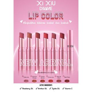 XI XIU DIVINE LIP COLOR hadir dengan 6 pilihan warna yang akan membuat bibir terlihat semakin mempesona , daya coverage tinggi dan tahan lama. Diperkaya dengan Raspberry Oil, Avocado Oil, Jojoba Oil, dan Vitamin E untuk membantu bibir terasa lebih lembut,lembab, dan mempesona. Dengan warna-warna yang cantik cocok dipakai untuk sehari-hari