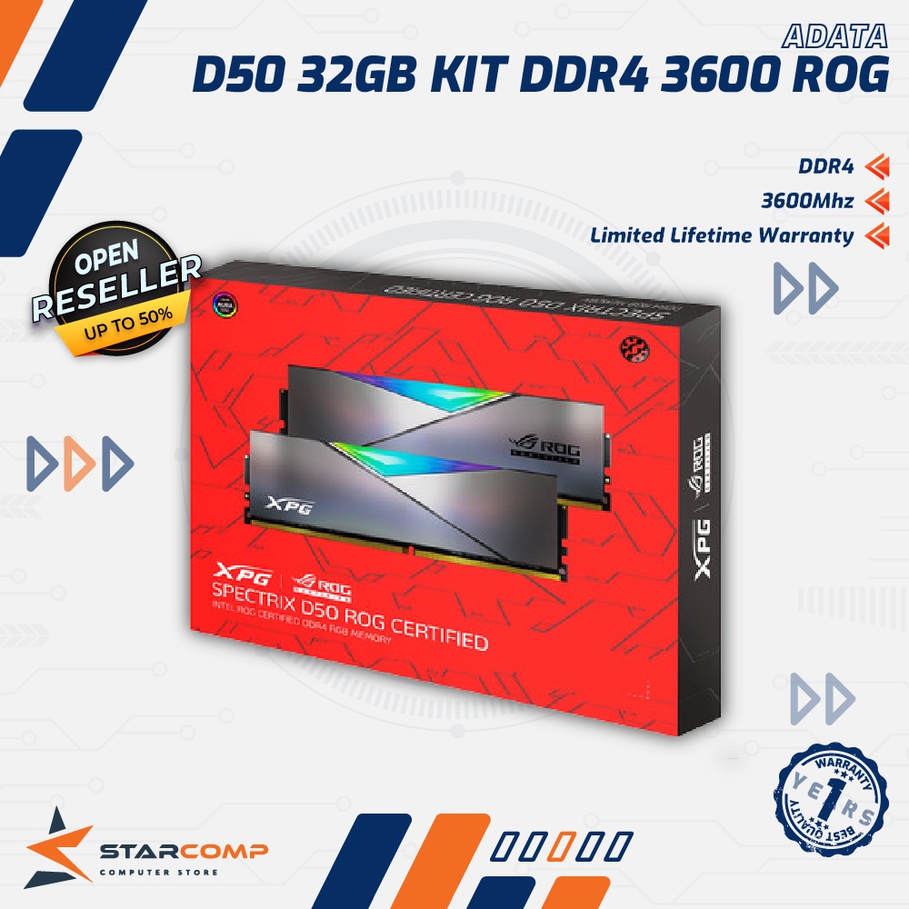 Komputer & Aksesoris > Komponen Desktop & Laptop > Memory RAM > RAM ADATA XPG SPECTRIX D50 ROG 32GB | RGB 2x16GB DDR4 3600 MHz