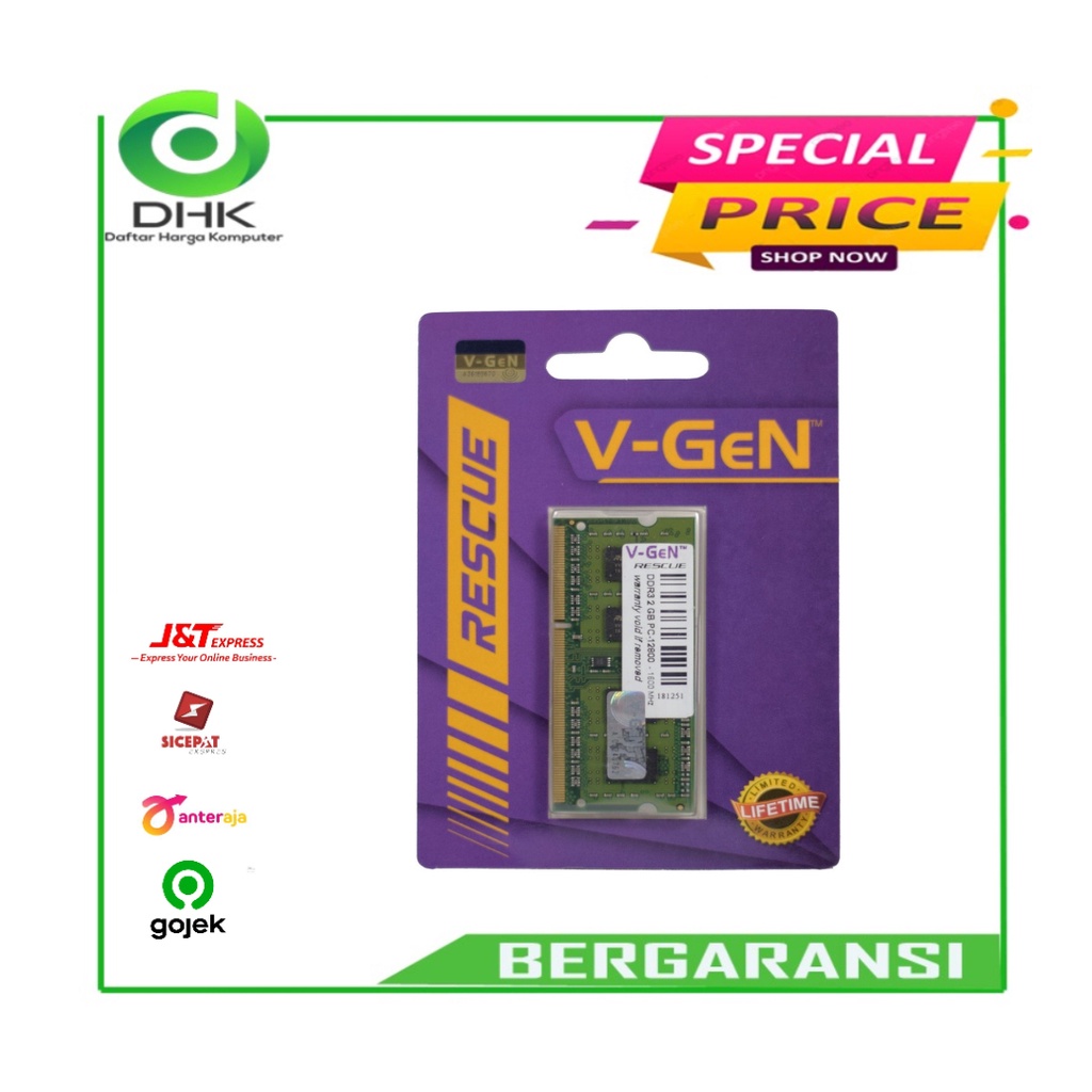 Dimensi : 68mm x 30mm x 2mm Kecepatan : 1600Mhz Chipset : V-GeN Slot : DIMM 204 Pin Type : Unbuffered Voltage : 1.5V / 1.35V (LOW VOLTAGE) ECC : No Registered : No Garansi : Limited Lifetime Warranty