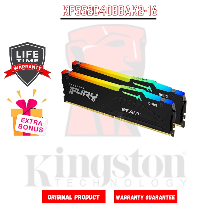 RAM Kingston FURY BEAST RAM DIMM 16GB 5200MHz DDR5 Fury KF552C40BBAK2-16 100% Original dari Kingston Technology Detail Produk: - Nama: Kingston FURY BEAST Seri Tangguh RAM DIMM 16GB 5200MHz DDR5 Black - Antarmuka: DDR5 - Kapasitas: 16 GB - Garansi: seumur hidup