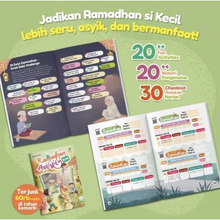 Sambil menunggu waktu berbuka, yuk ajak si kecil untuk melakukan aktivitas yang seru seperti yang ada di “RAMADHAN ACTIVITY BOOK”. Ini adalah produk best seller yang telah terjual 60.000 pcs di tahun sebelumnya. Namun, kali ini hadir lagi dengan cover dan isi yang lebih fresh. Cocok banget untuk si kecil di sekolah, TPQ, maupun di rumah
