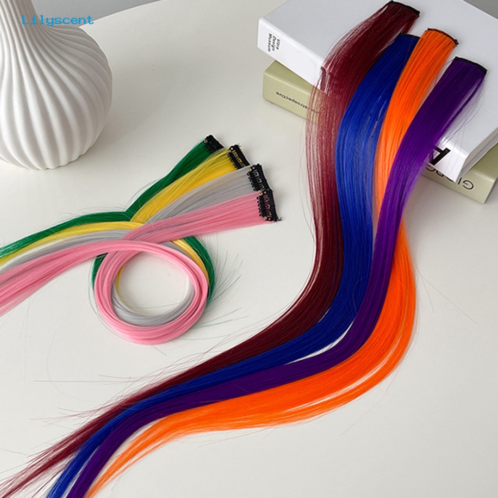 Aksesoris Fashion > Aksesoris Rambut > Hiasan Kepala, Tiara & Mahkota Bunga > Rambut Palsu Extension Highlight Model Lurus Bahan Serat Buatan Warna-Warni Dengan Klip Untuk Wanita