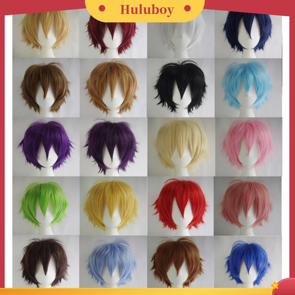 Detail Rambut Palsu Pria Dan Wanita Model Pendek Lurus Warna-Warni Untuk Pesta Cosplay Anime
