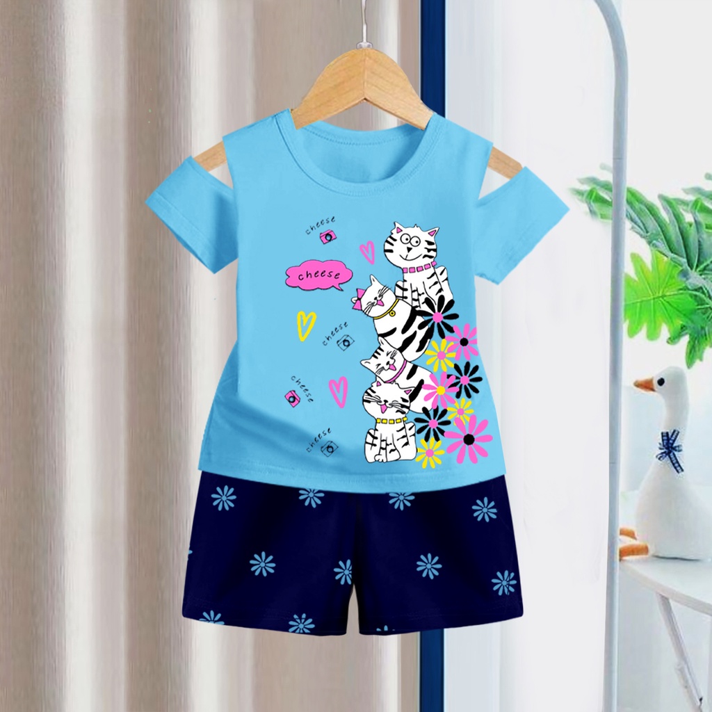 Bahan : Katun PE Premium Strech, halus, tidak panas, nyaman dipakai untuk sikecil Sablon kualitas bagus, tidak luntur dan aman untuk sikecil. Setelan yang bisa dipakai di dalam rumah / saat keluar jalan2. . GENDER: Perempuan