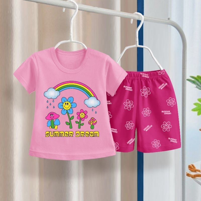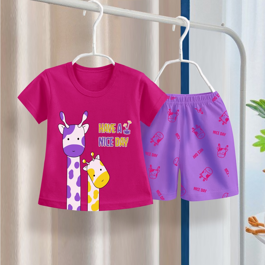 Bahan : Katun Strech, halus, tidak panas, nyaman dipakai untuk sikecil Sablon kualitas bagus, tidak luntur dan aman untuk sikecil. Setelan yang bisa dipakai di dalam rumah / saat keluar jalan2. GENDER: PEREMPUAN