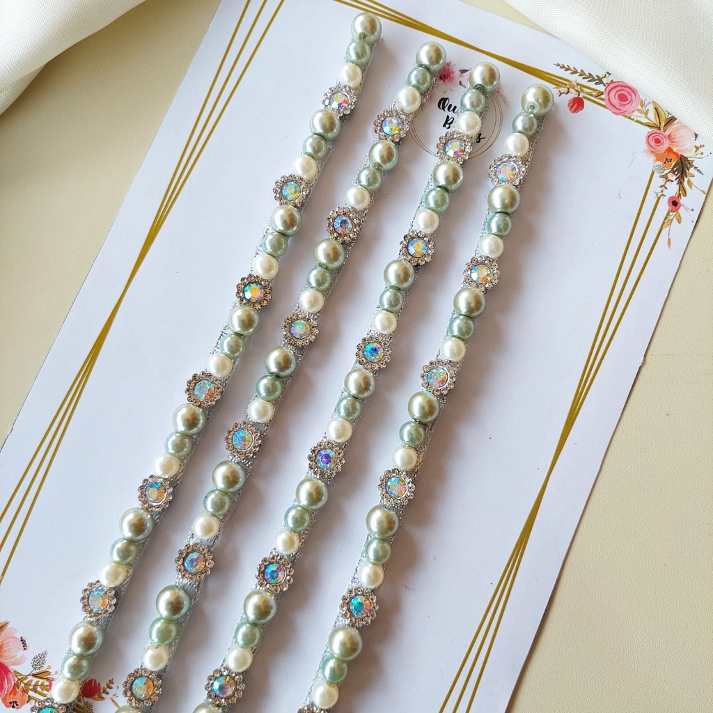 KETERANGAN PRODUK : ==================== PAYET RANGKAI MUTIARA PREMIUM ======================= COCOK UNTUK HIASAN BAJU BAGIAN LEHER , PINGGANG ,TANGAN , JILBAB, PASMINA DLLNYA