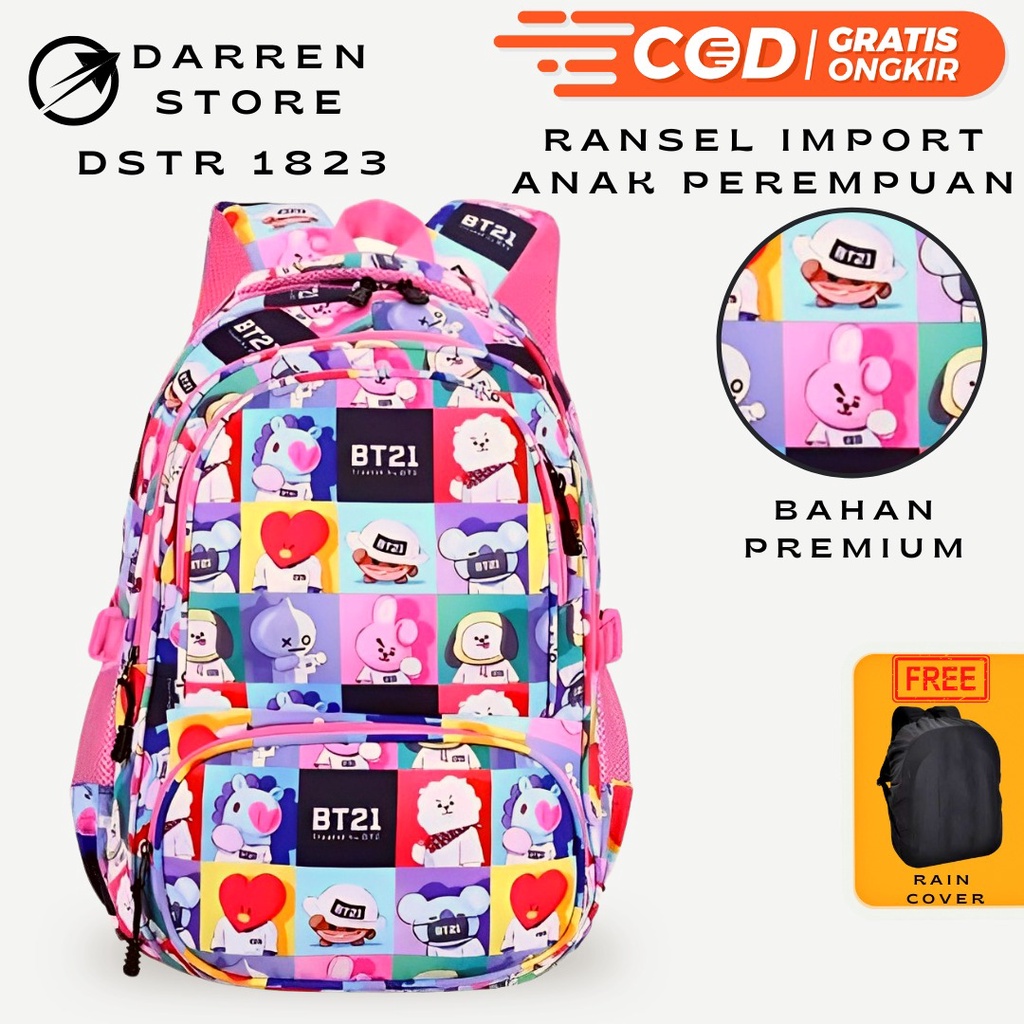 Detail Ransel Anak karakter BT 21 Tas Sekolah Import 1823 18inch Backpack Free Raincover