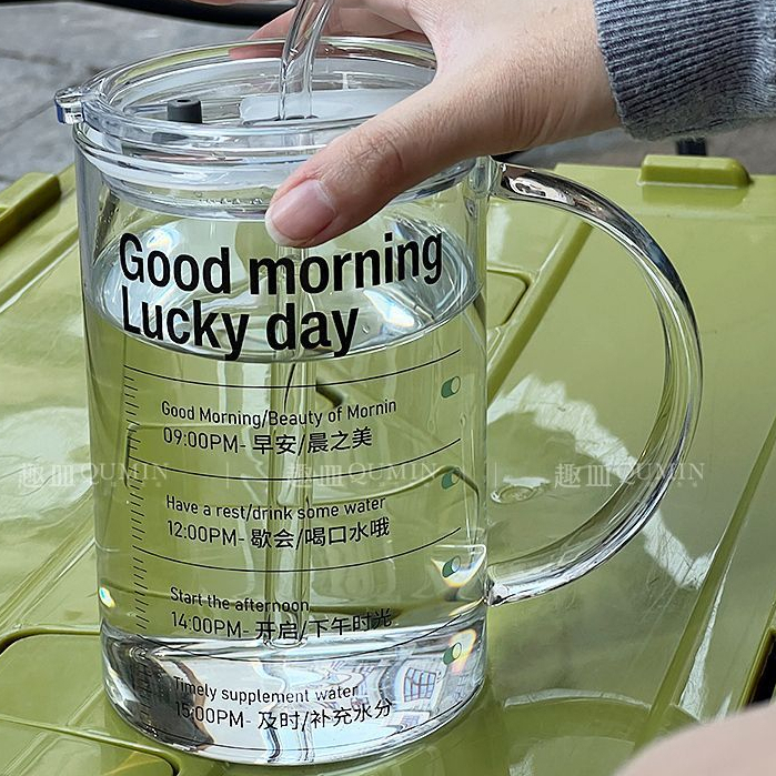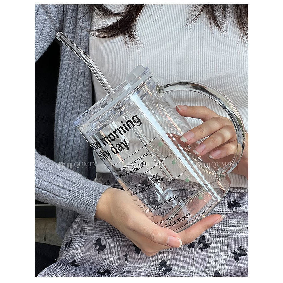 Perlengkapan Rumah > Peralatan Makan > Botol Minum & Aksesoris > [ransparent Cangkir air gelas susu dengan skala cangkir menebal tahan suhu tinggi kantor mporttraw cangkir kapasitas besar-kapasitas graduated gelas jerami cangkir susu rumah kreatif cangkir cangkir teh