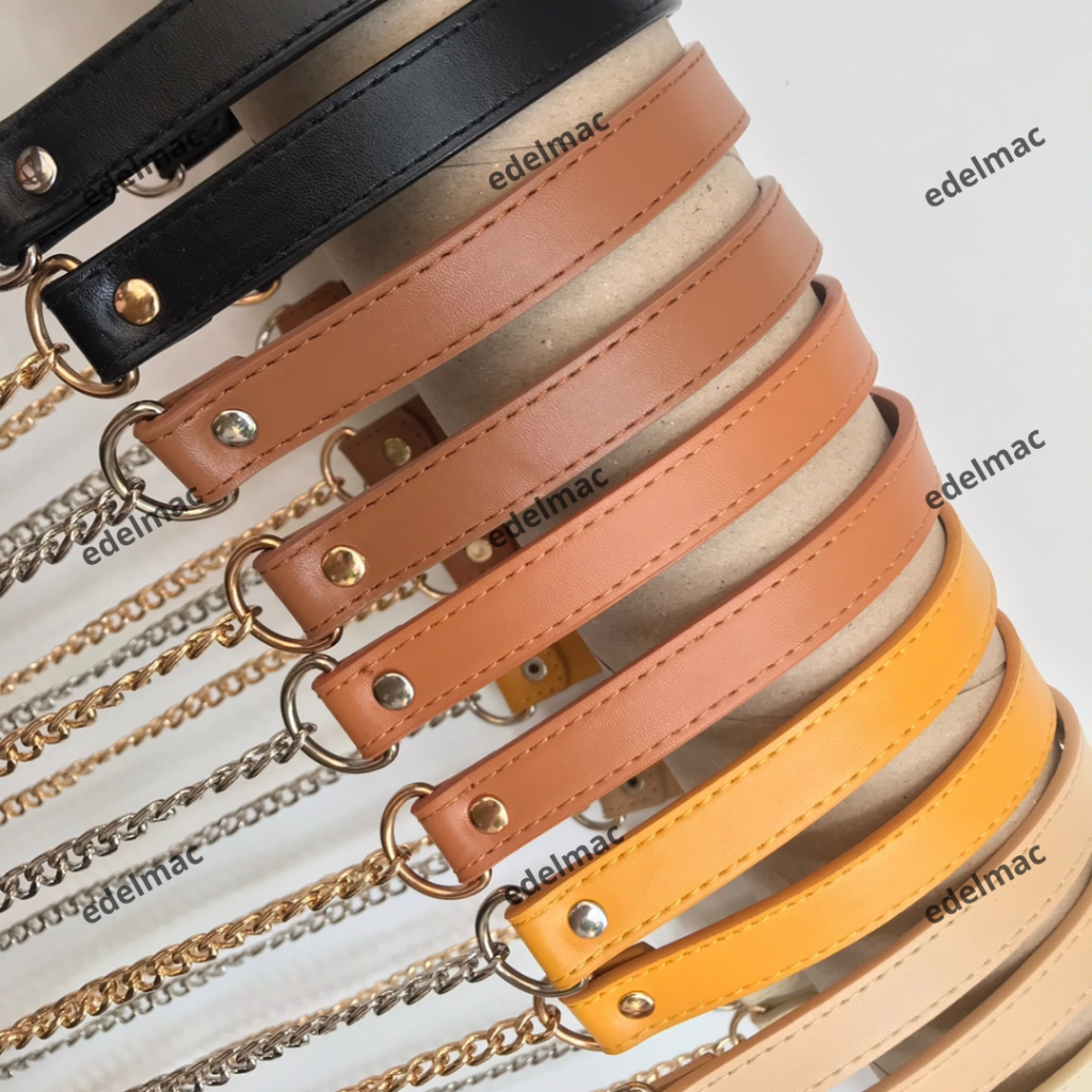 Rantai Kait Handle Kulit Sintetis Tali Tas Sling Bag Leather Belt Metal Chain Cross Shoulder Strap Aksesoris Harga untuk 1pc ( sudah termasuk kaitan ) panjang : 120cm Bahan : Metal & kulit sintetis