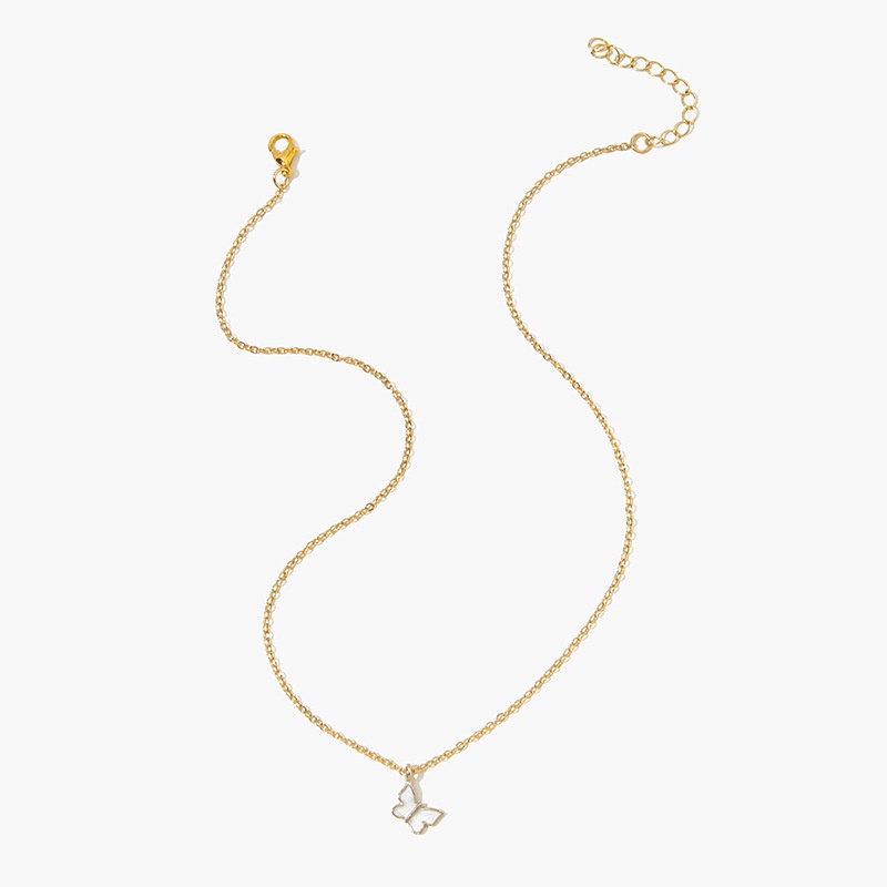 Aksesoris Fashion > Kalung > Rantai & Link > Rantai Kerah Kupu-Kupu Desain Minoritas Perancis Ins Style Kalung Liontin Kupu-Kupu Putih Minyak Drop Sederhana