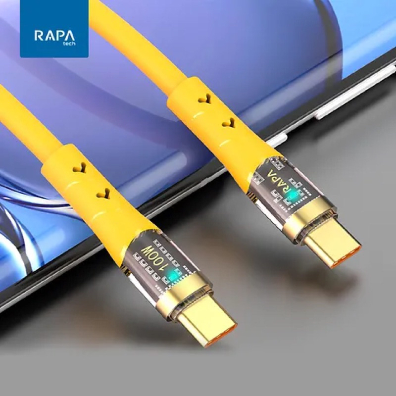 Handphone & Aksesoris > Kabel, Charger, & Konverter > Kabel & Adaptor Handphone > RAPAtech Crystal Kabel Data Usb Type C to Type C Super Fast Charging Up To 100W Speed Data Transmisi 480mbps smart Chip iC Cable Usb C to C