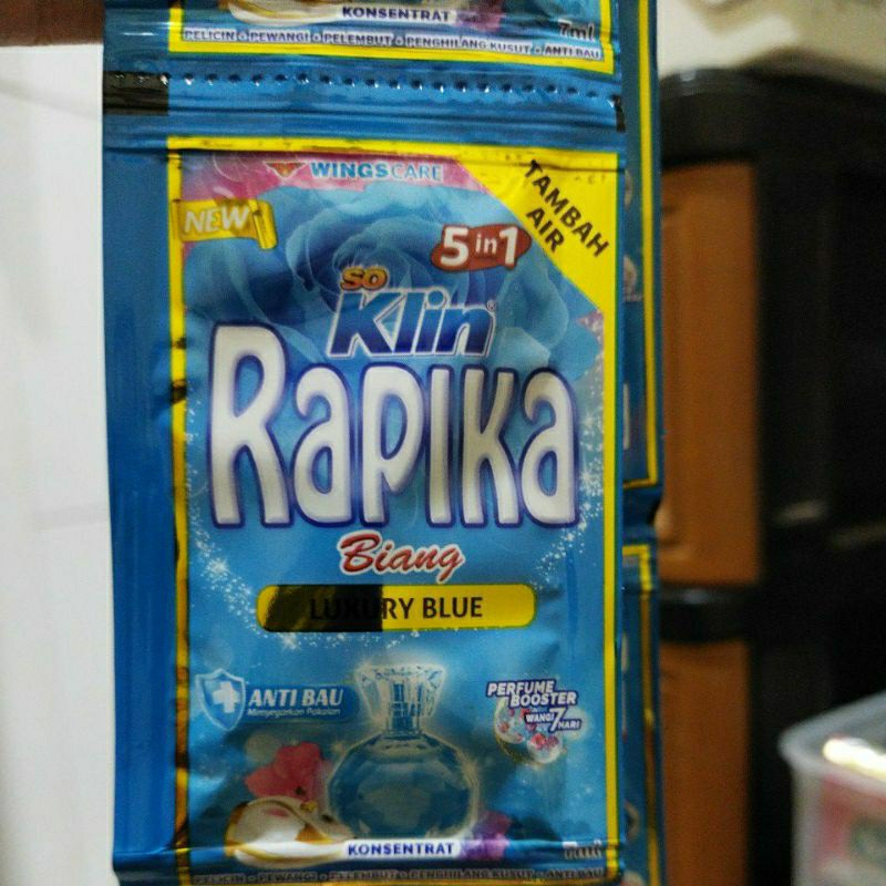 Rapika Biang membuat pakaian Anda semakin lembut dan mudah disetrika. Pelicin konsentrat ini dilengkapi formula khusus yang mampu melindungi pakaian dari kuman penyebab bau apak. Memiliki formula konsentrat sehingga lebih hemat serta menjadikan pakaian semakin licin dan rapi, mampu menghilangkan kusut pada pakaian. Siap pakai tanpa air.