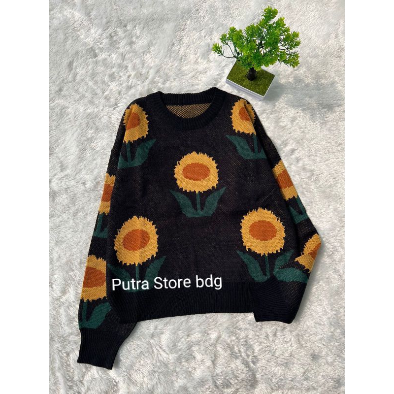 RARA SWEATER RAJUT WANITA MOTIF SUNFLOWER