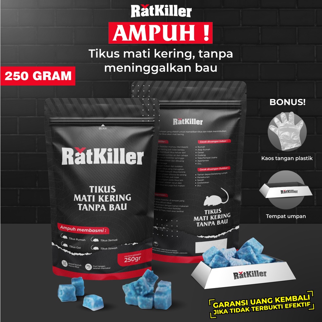 Barang Yang Anda Dapatkan: - 1 PCS Ratkiller 250 Gram - Tempat Umpan Tikus - Sarung Tangan