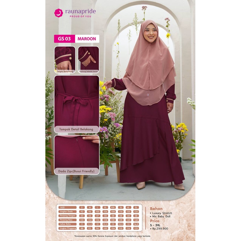 Detail Rauna RGS GS 03 Gamis Syari Set / Rauna Terbaru 2022 / Fashion Muslim