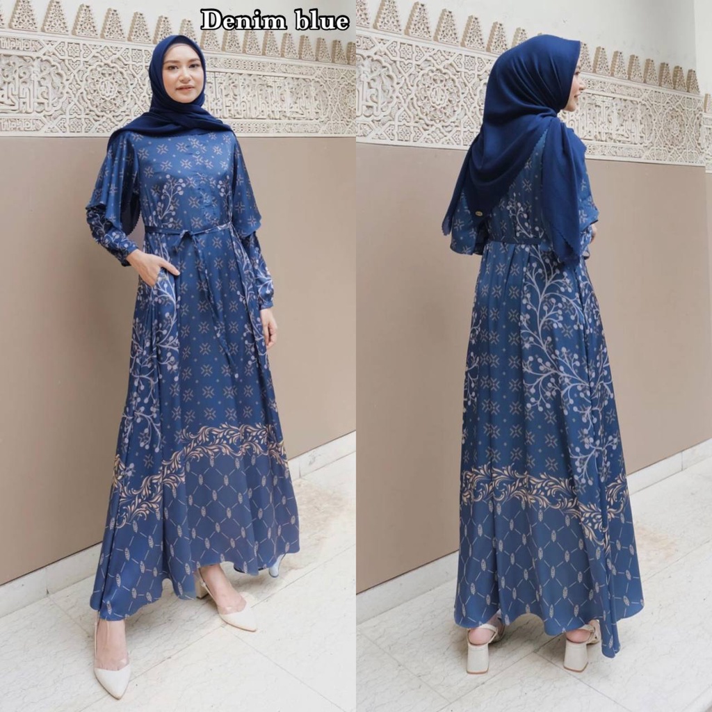 Detail Raya Gamis Terbaru Diora Silk Premium Dress Wanita Lengan Lonceng Panjang Maxidress Kekinian LD 110 cm