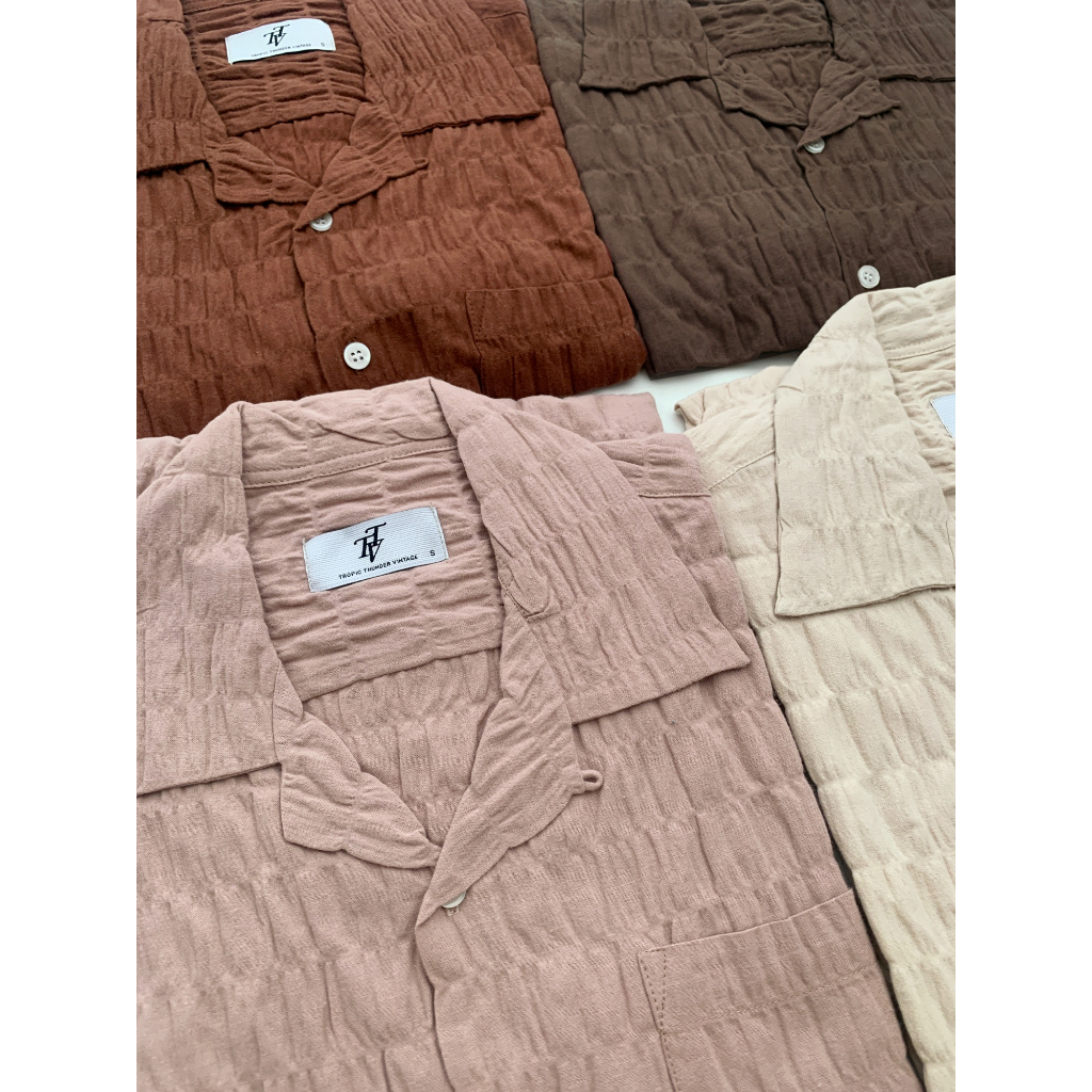 Fancy Cotton Embossed Shirt, Classic Tropic Thunder Open Collar Boxed Fit