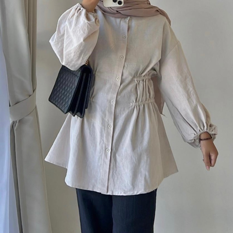 Kemeja panjang tunik dengan pinggang kerut karet double layer ini terbuat dari bahan linen angle yang berserat, menyerap keringat, dan halus. Tersedia dalam 12 pilihan warna dan ukuran onesize dengan berat 350gr.