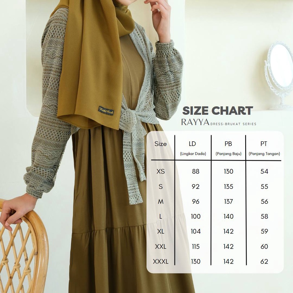 Gamis RAYYA Brukat ✔️ bahan shakila premium yang halus dan flowy, dipadu brukat chantyle, brukat mewah dengan benang terhalus, kokoh dan dengan ekslusif motif ✔️ Busui (resleting depan -/+30 cm) ✔️ Style 2 in 1 seperti menggunakan gamis dan outer sekaligus ✔️ Tali pita cantik di bagian rompi ✔️ Rompi brukat chantyle yang dijahit menyatu, bahan super ekslusif dengan warna warna nude ✔️ Tangan karet (wudhu friendly) ✔️ 2 buah saku samping kanan dan kiri ✔️ Rok dengan model kerut tingkat yang cantik ✔️ Tersedia ukuran dewasa ✔️ Ukuran tersedia Dewasa size XS, S, M, L, XL, XXL, XXXL ✔️ 4 variasi warna - mocca nude - mauve pink - broken white -olive sage