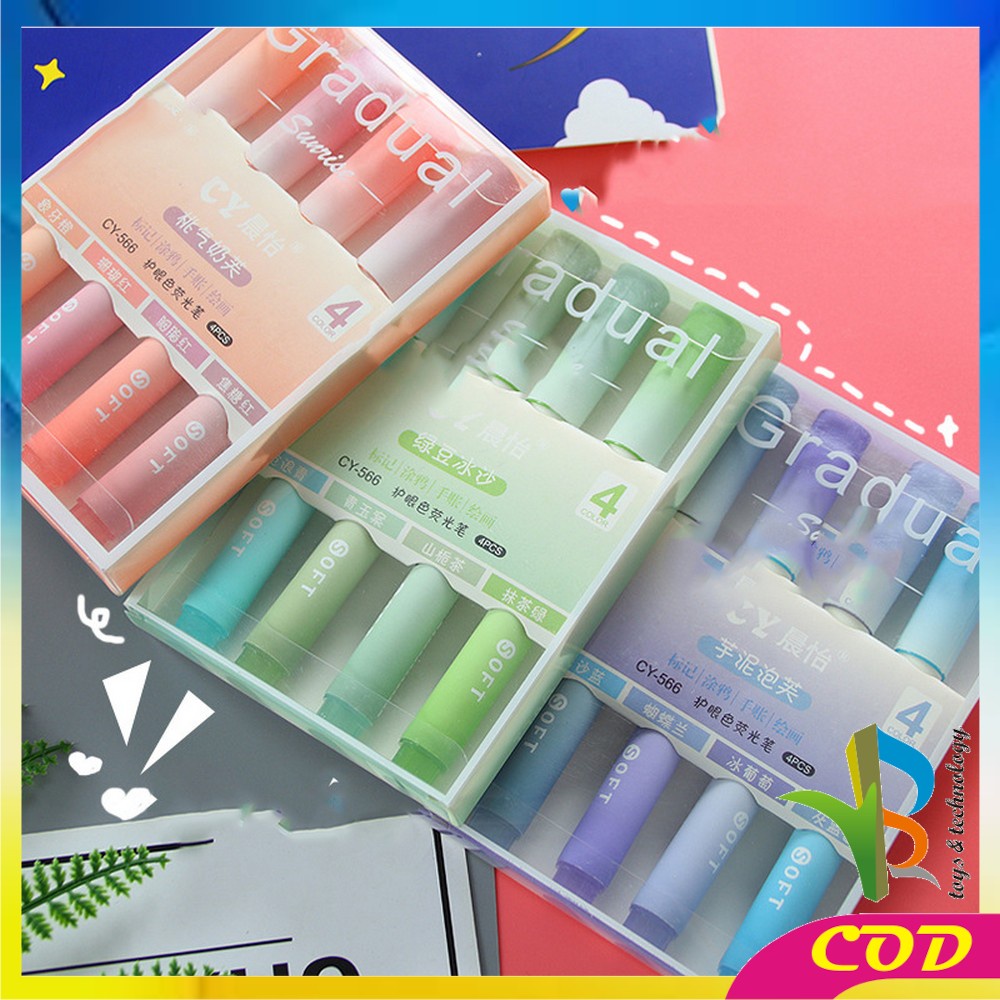 Buku & Alat Tulis > Alat Tulis > Spidol > RB-A55 Highlighter Pastel Penanda Teks Set 4IN1 Alat Tulis Sekolah / Spidol Pen Marker Warna Gradasi Painting Multifungsi / Textliner Stasionary Import