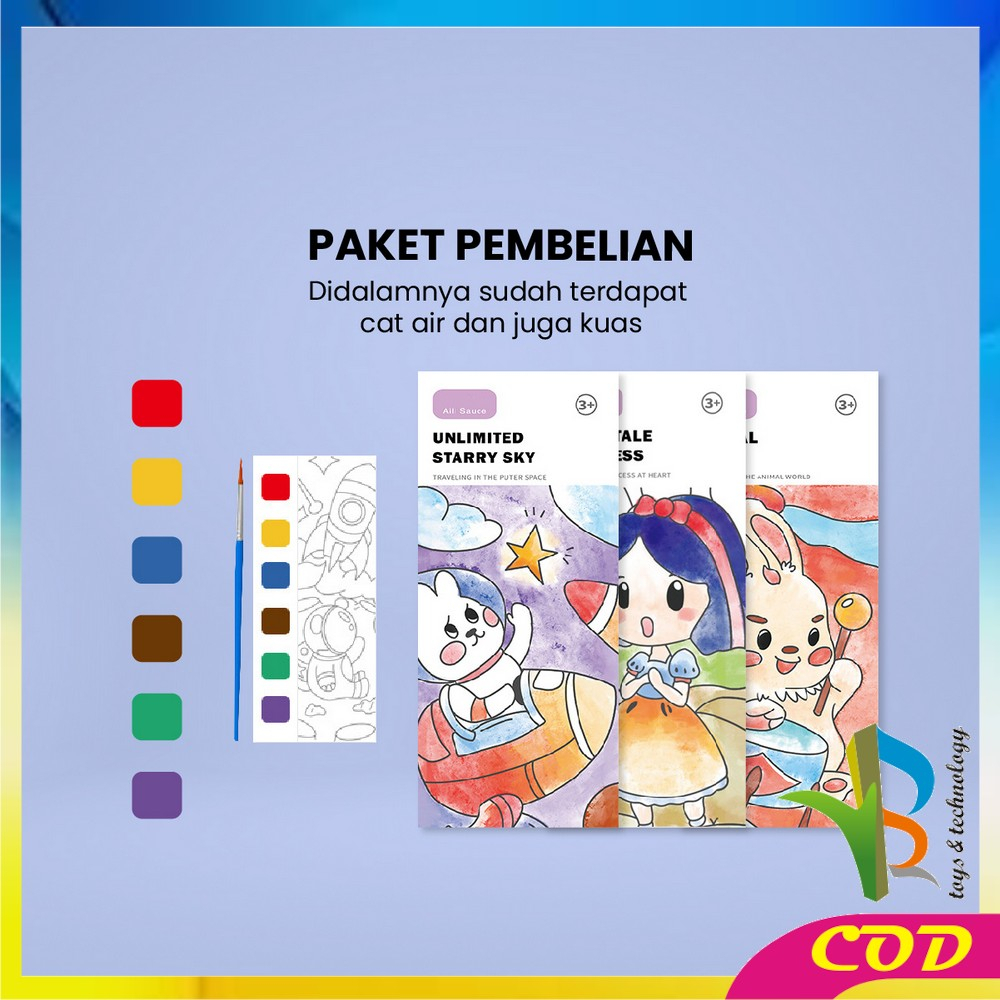 RB-A56 Buku Gambar Mewarnai Buku Lukis Cat Air Set Free Kuas / Buku Mewarnai Watercolor Book Coloring Edukasi Anak