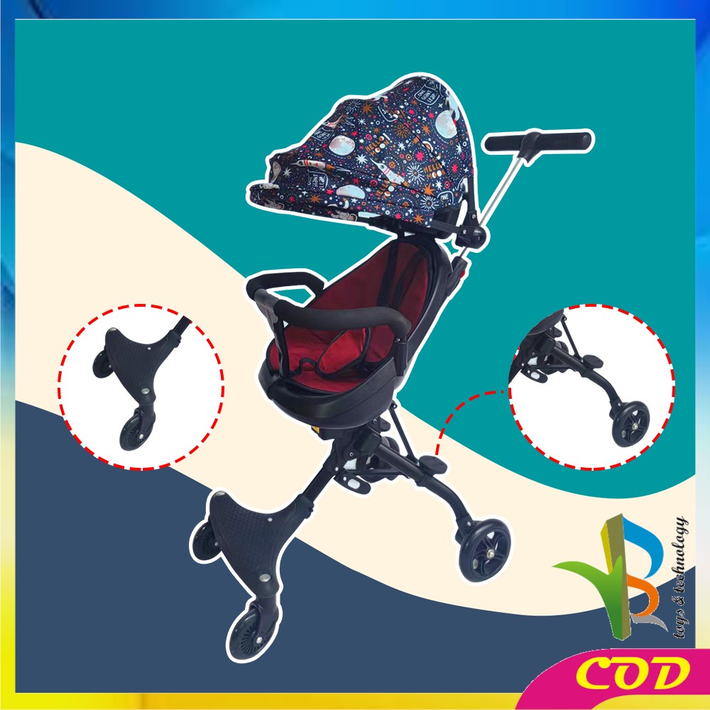 Spesifikasi : - Memiliki posisi 2 arah : menghadap ibu atau menghadap depan. - Pijakan kaki untuk Front Facing (Hadap depan) ataupun Mother Facing (Hadap Ibu). - Kursi yang lebar untuk kenyamanan si anak (untuk berat anak hingga berat 45kg). - Roda Karet ( tidak gampang patah ) roda dilengkapi dengan bearing. - Ada sabuk pengaman. - Tempat duduk dapat dibolak balik. - Dilengkapi dengan rem pada roda belakang. - Berat maksimum anak 45kg.