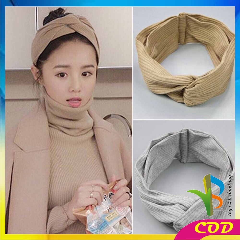 Aksesoris Fashion > Aksesoris Rambut > Bando & Bandana > RB-C63 Bando Korea Wanita Motif Garis Salur Karet Elastis Dengan Kancing Pengait Masker / Headband Bendo Aksesoris Rambut Fashion Wanita Import