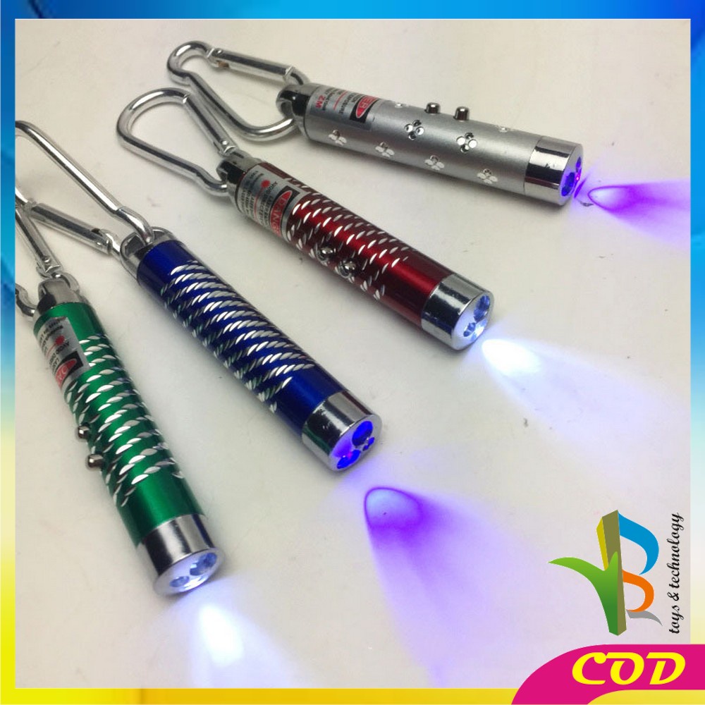 Fungsi : - Senter bewarna Putih, dapat digunakan sebagai senter menerangi berjalan di malam hari / di tempat gelap. - Laser UV bewarna ungu / violet, dapat digunakan untuk memeriksa uang kertas. - Laser pointer berwarna merah, dapat digunakan untuk briefing saat presentasi. - Dapat Dijadikan Sebagai gantungan kunci.