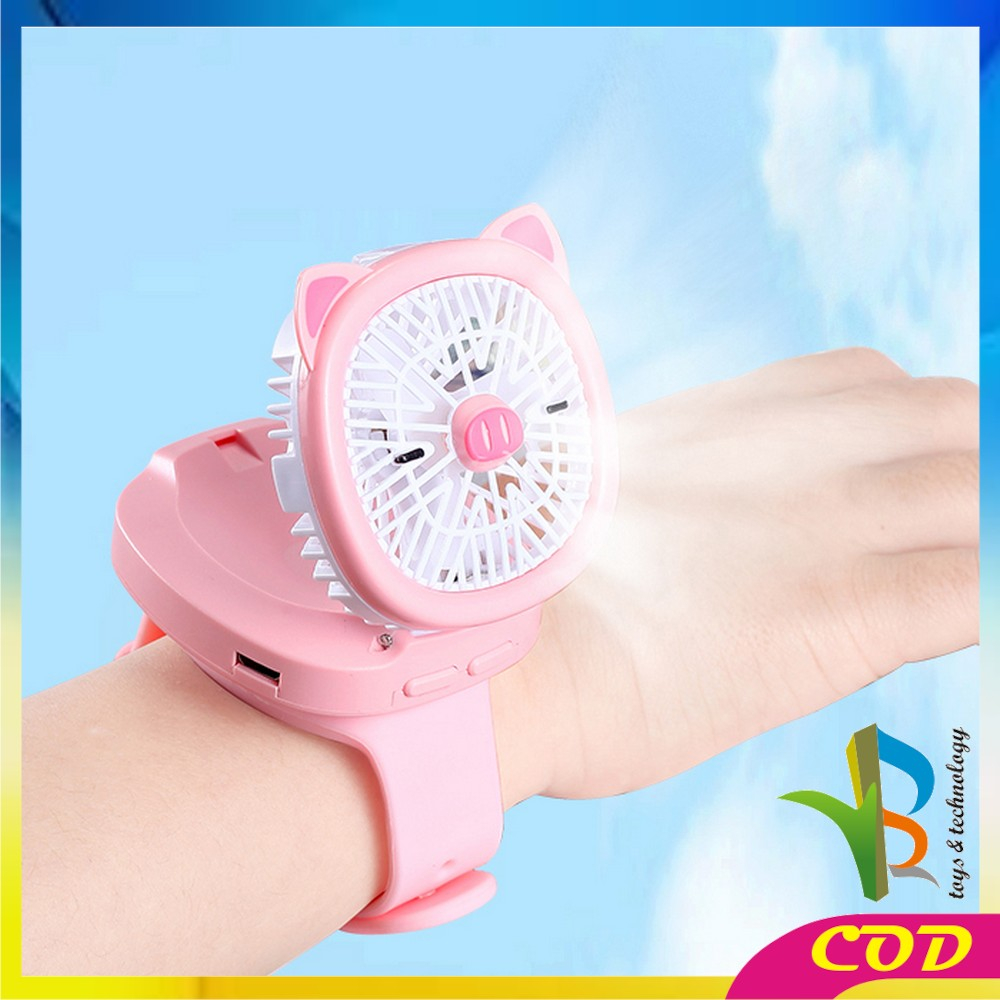 RB-C875 Kipas Jam Tangan Mini Portable USB Rechargeable / Kipas Angin Karakter Animal Model Jam Tangan Strap / Kipas Kecil Lucu / Wirst Watch Fan Import