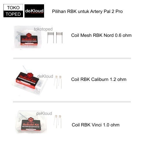 ** Ada 3 Pilihan RBK untuk Arteryy Pal 2 Pro: -- RBK Nord 0.6 ohm -- RBK Caliburnz 1.2 ohm -- RBK Vincll 1.0