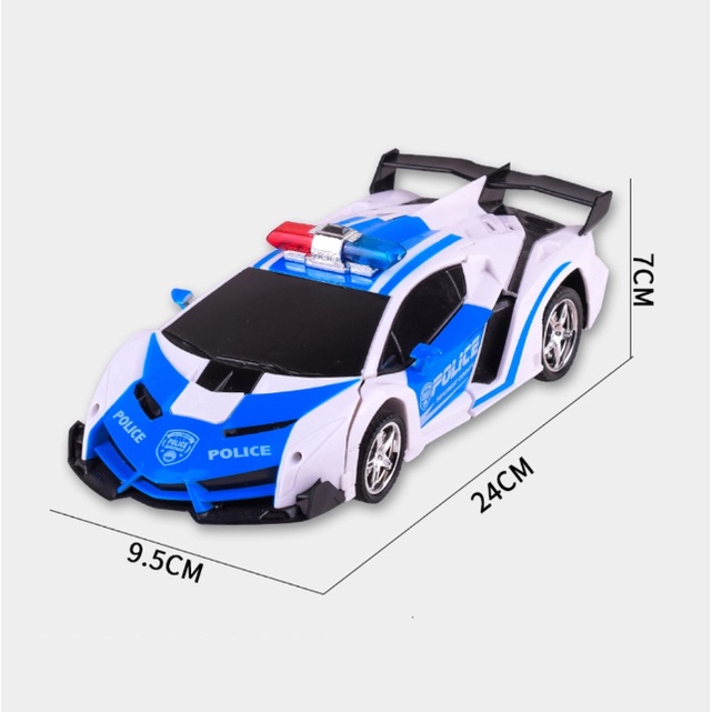 Detail Rc Car Mainan Anak Mobil Polisi Autobot Remote Control Deformation Berubah Robot 2 in 1 Baterai Cas