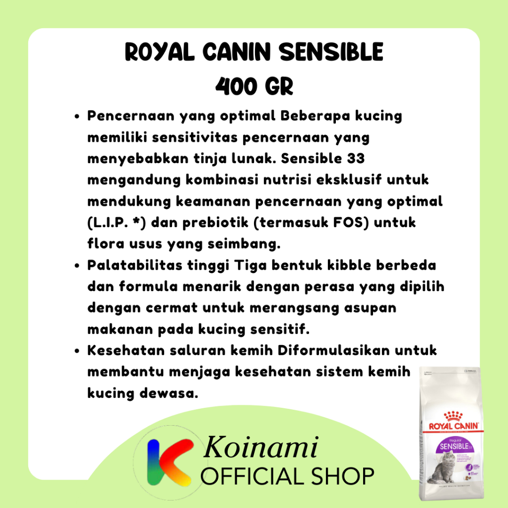 Detail RC SENSIBLE 33 400 GR / royal canin cat / dry food / makanan kucing
