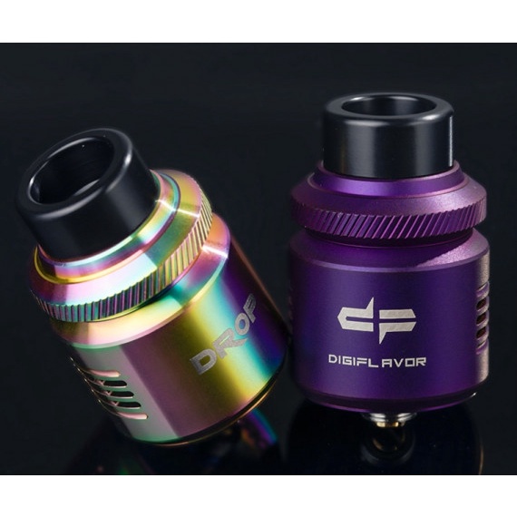 Drop RDA V2 Digiflavor Details: 1. Upgraded space-capsuled metallic body 2. Dual post build deck design with four large post holes 3. Fully metal-made for superior connectivity 4. Perfect airflow control for DL & RDL 5. Dual-coil DIY deck 6. Multi-air-inlet airflow adjustment 7. BF pin included